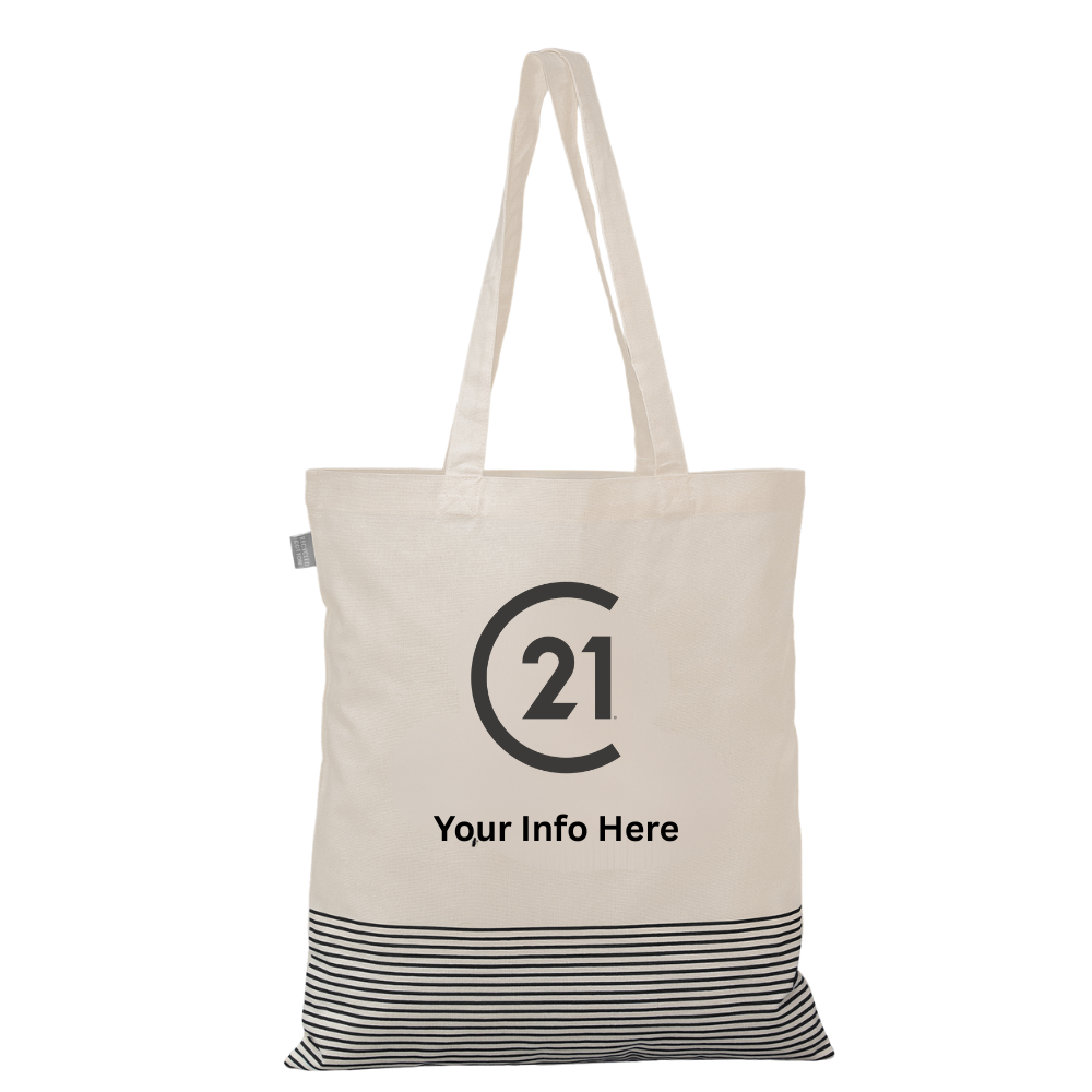 {"id":9427526975705,"title":"Cotton Black Stripe Tote Bag - Personalized - NEW","handle":"cotton-black-stripe-tote-bag-personalized-new","description":"\u003cp\u003e\u003cstrong\u003e\u003cspan\u003eFree ground shipping on Bags to the 48 contiguous US states and Canada.   NB:  We know this is going to be a popular new item.   Stock is arriving early March for Pre Orders.\u003c\/span\u003e\u003c\/strong\u003e\u003c\/p\u003e\n\u003cp\u003eThis classic shopping tote's body is made of durable 5 oz 70% recycled content cotton and 30% recycled content PET. It proudly features a Digital Product Passport and sewn-in QR code tag that  celebrates its material story. The bag is subtly enhanced with a black printed micro stripe design near the bottom, adding a stylish detail to its natural canvas. With a spacious 9.7-liter capacity (max weight 10kg) and two  handles, the Aro is perfect for groceries, errands, or books, providing a functional and conscious alternative to disposable bags.\u003c\/p\u003e\n\u003cp\u003eSize:  16.54\" H x 14.96\" W\u003c\/p\u003e\n\u003cp\u003e\u003cspan\u003eAn Artwork Proof will be supplied before printing.   Production time is 14 days after artwork approval plus delivery time to your destination.\u003c\/span\u003e\u003c\/p\u003e","published_at":"2026-01-26T17:45:22-08:00","created_at":"2026-01-26T17:41:58-08:00","vendor":"GOLDSTAR - UMZ 2026","type":"Cotton Tote","tags":["meta-moq_100","meta-opt-Colour_Black","meta-opt-Size_MOQ 100","meta-xo_upload-only"],"price":450,"price_min":450,"price_max":520,"available":true,"price_varies":true,"compare_at_price":null,"compare_at_price_min":0,"compare_at_price_max":0,"compare_at_price_varies":false,"variants":[{"id":47740014067929,"title":"100","option1":"100","option2":null,"option3":null,"sku":"US7772C21","requires_shipping":true,"taxable":true,"featured_image":null,"available":true,"name":"Cotton Black Stripe Tote Bag - Personalized - NEW - 100","public_title":"100","options":["100"],"price":520,"weight":513,"compare_at_price":null,"inventory_quantity":0,"inventory_management":"shopify","inventory_policy":"continue","barcode":"","requires_selling_plan":false,"selling_plan_allocations":[]},{"id":47740014100697,"title":"250","option1":"250","option2":null,"option3":null,"sku":"US7773C21","requires_shipping":true,"taxable":true,"featured_image":null,"available":true,"name":"Cotton Black Stripe Tote Bag - Personalized - NEW - 250","public_title":"250","options":["250"],"price":498,"weight":513,"compare_at_price":null,"inventory_quantity":0,"inventory_management":"shopify","inventory_policy":"continue","barcode":"","requires_selling_plan":false,"selling_plan_allocations":[]},{"id":47740014133465,"title":"1000","option1":"1000","option2":null,"option3":null,"sku":"US7774C21","requires_shipping":true,"taxable":true,"featured_image":null,"available":true,"name":"Cotton Black Stripe Tote Bag - Personalized - NEW - 1000","public_title":"1000","options":["1000"],"price":450,"weight":513,"compare_at_price":null,"inventory_quantity":0,"inventory_management":"shopify","inventory_policy":"continue","barcode":"","requires_selling_plan":false,"selling_plan_allocations":[]}],"images":["\/\/century-21-promo-shop.myshopify.com\/cdn\/shop\/files\/YourInfoHere.png?v=1769478169","\/\/century-21-promo-shop.myshopify.com\/cdn\/shop\/files\/umz-black.jpg?v=1769478183"],"featured_image":"\/\/century-21-promo-shop.myshopify.com\/cdn\/shop\/files\/YourInfoHere.png?v=1769478169","options":["Bracket, up to"],"media":[{"alt":null,"id":38530412970201,"position":1,"preview_image":{"aspect_ratio":1.0,"height":1000,"width":1000,"src":"\/\/century-21-promo-shop.myshopify.com\/cdn\/shop\/files\/YourInfoHere.png?v=1769478169"},"aspect_ratio":1.0,"height":1000,"media_type":"image","src":"\/\/century-21-promo-shop.myshopify.com\/cdn\/shop\/files\/YourInfoHere.png?v=1769478169","width":1000},{"alt":null,"id":38530413101273,"position":2,"preview_image":{"aspect_ratio":1.0,"height":2000,"width":2000,"src":"\/\/century-21-promo-shop.myshopify.com\/cdn\/shop\/files\/umz-black.jpg?v=1769478183"},"aspect_ratio":1.0,"height":2000,"media_type":"image","src":"\/\/century-21-promo-shop.myshopify.com\/cdn\/shop\/files\/umz-black.jpg?v=1769478183","width":2000}],"requires_selling_plan":false,"selling_plan_groups":[],"content":"\u003cp\u003e\u003cstrong\u003e\u003cspan\u003eFree ground shipping on Bags to the 48 contiguous US states and Canada.   NB:  We know this is going to be a popular new item.   Stock is arriving early March for Pre Orders.\u003c\/span\u003e\u003c\/strong\u003e\u003c\/p\u003e\n\u003cp\u003eThis classic shopping tote's body is made of durable 5 oz 70% recycled content cotton and 30% recycled content PET. It proudly features a Digital Product Passport and sewn-in QR code tag that  celebrates its material story. The bag is subtly enhanced with a black printed micro stripe design near the bottom, adding a stylish detail to its natural canvas. With a spacious 9.7-liter capacity (max weight 10kg) and two  handles, the Aro is perfect for groceries, errands, or books, providing a functional and conscious alternative to disposable bags.\u003c\/p\u003e\n\u003cp\u003eSize:  16.54\" H x 14.96\" W\u003c\/p\u003e\n\u003cp\u003e\u003cspan\u003eAn Artwork Proof will be supplied before printing.   Production time is 14 days after artwork approval plus delivery time to your destination.\u003c\/span\u003e\u003c\/p\u003e"}