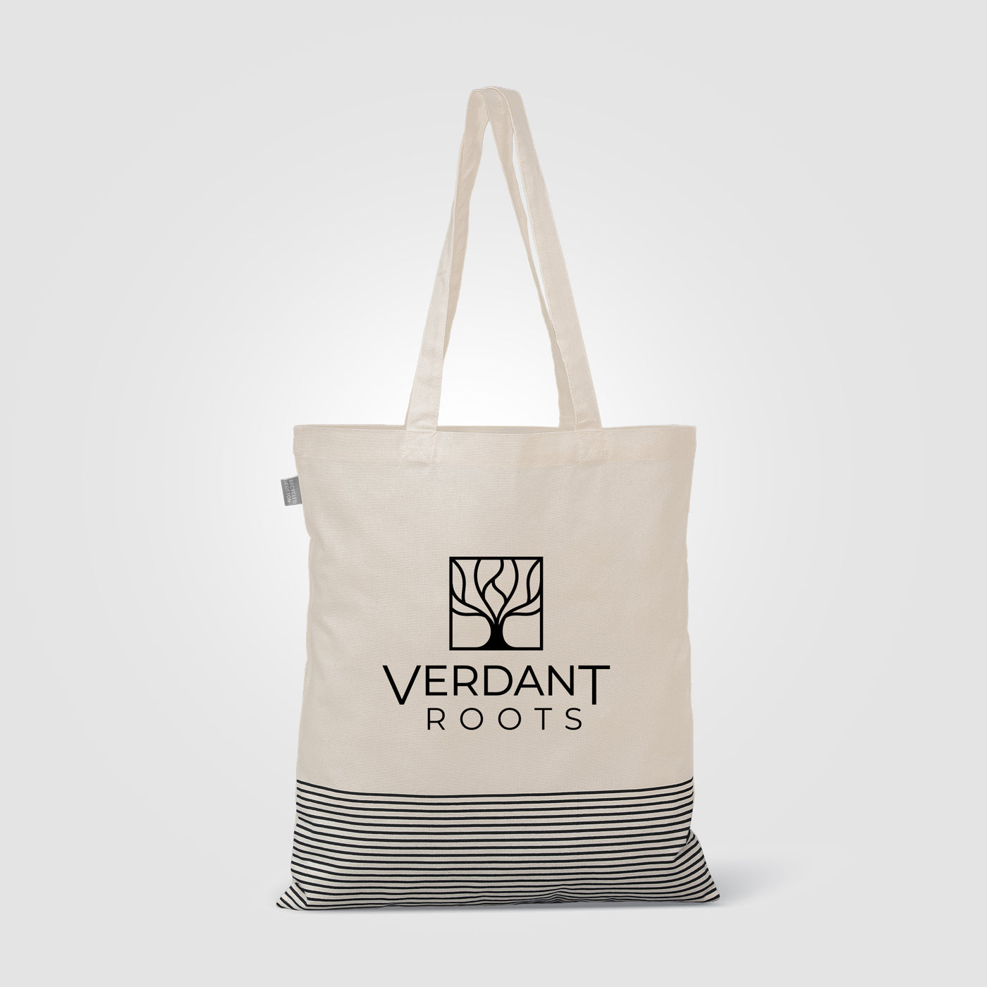 Cotton Black Stripe Tote Bag - Personalized - NEW