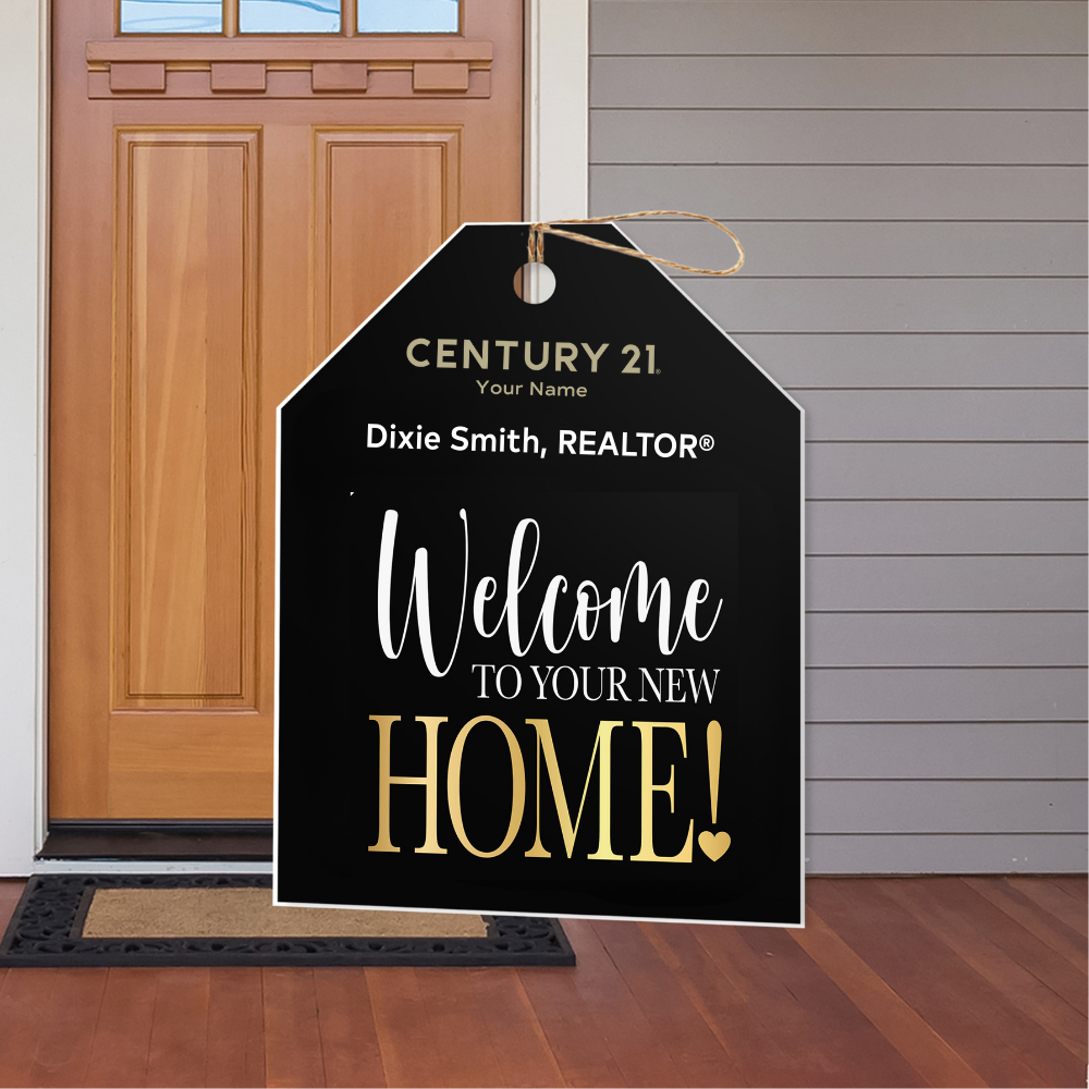 Printed on Coroplast Material with a hang tag string, these large size Gift Tag signs make the perfect welcome to your new home decoration.